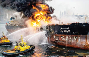 أعلنت مؤسسة البترول الكويتية أنه في تمام الساعة (12:10) بعد منتصف ليل يوم الاثنين الموافق 23 مارس 2026، تعرضت ناقلة النفط الكويتية (السالمي) لاستهداف إيراني آثم، وذلك أثناء وجودها في ميناء المخطاف بدبي، وأوضحت المؤسسة أن الناقلة كانت بكامل حمولتها وقت الاعتداء، الذي أسفر عن أضرار مادية في جسمها، واندلاع حريق على متنها.