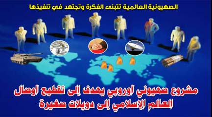 الصهيونية العالمية تتبنى الفكرة وتجتهد في تنفيذها-مشروع صهيوني أوروبي يهدف إلى تقطيع أوصال العالم الإسلامي إلى دويلات صغيرة
