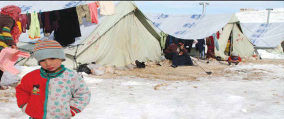 قرابة الشهر والصقيع يلف منطقتنا العربية، يجمد الدماء في عروق الذين أخرجوا من ديارهم ، تحت صوت القصف وزمجرة المدافع...