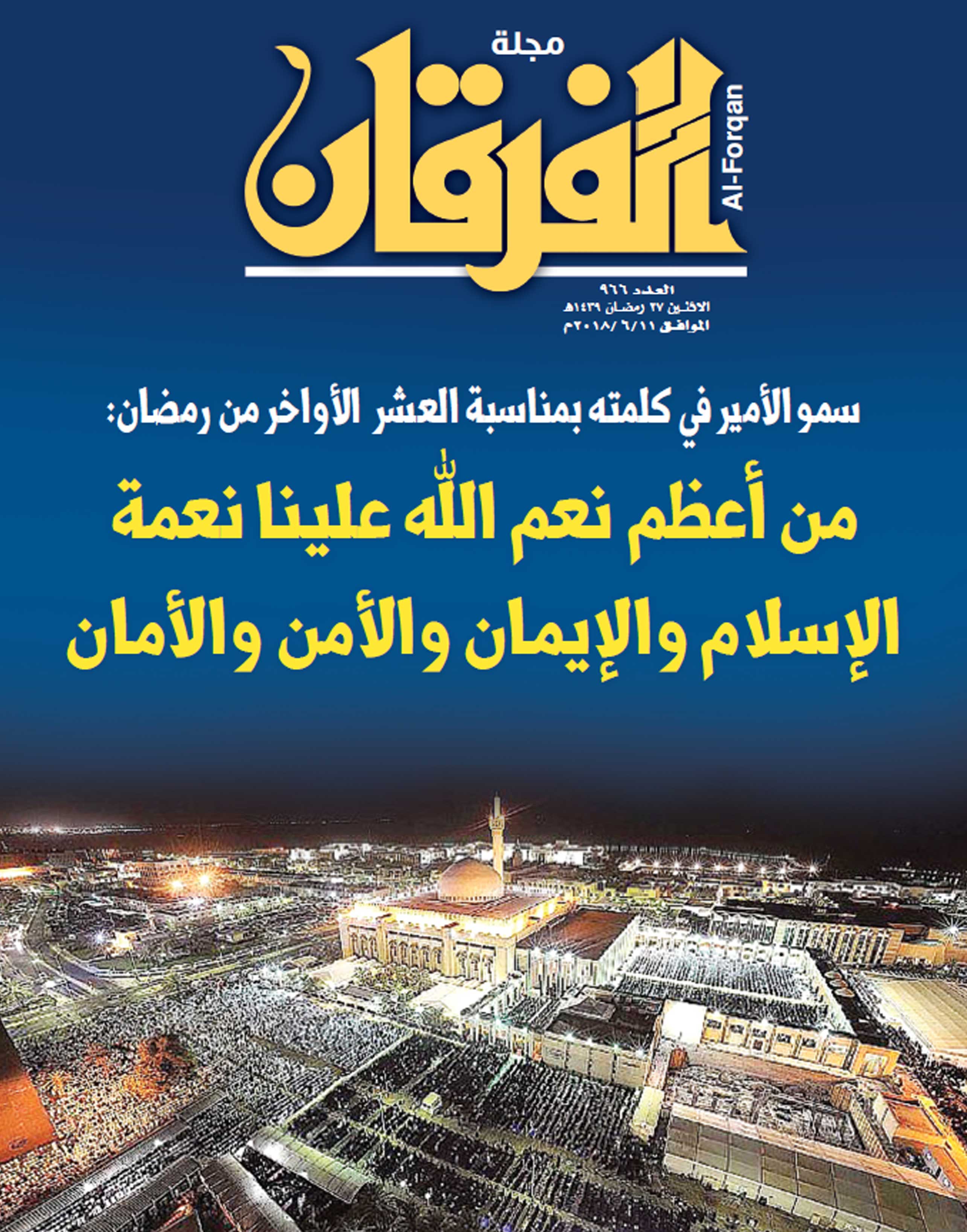 سمو الأمير في كلمته بمناسبة العشر الأواخر من رمضان : سمو أمير البلاد: من أعظم نعم الله علينا نعمة الإسلام والإيمان والأمن والأمان