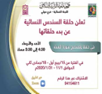 بدأ في حلقة السندس النسائية التابعة لجمعية إحياء التراث الإسلامي في منطقة حولي التسجيل في حلقة تصحيح سورة ( النساء) وحفظها، التي ستبدأ فعالياتها في الأول من نوفمبر القادم، والدراسة فيها يومي الأحد والأربعاء من الساعة (4٫30 – 5٫30) مساءً عبر برنامج ( زووم)، وسيكون التسجيل عبر الرقم (94154611). هذا، وقد دعت الجمعية أولياء الأمور إلى تسجيل بناتهم في مثل هذه الأنشطة؛ لما لها من دور كبير في تنشئتهن على كتاب الله -تبارك وتعالى- حفظاً وعملاً، الأمر الذي سيعود عليهن وعلى مجتمعهن بالنفع والفائدة بإذن الله -تعالى. والجدير بالذكر أن جمعية إحياء التراث الإسلامي أنشأت العديد من اللجان والحلقات النسائية في عدد من المناطق التي تدعو النساء للتمسك بالعقيدة الإسلامية الصحيحة وفق الكتاب والسنة، ووضع الأسس الإسلامية الصحيحة لبناء الأسرة المسلمة، ومن أجل تحقيق هذه الأهداف تقيم العديد من الأنشطة الخاصة بالنساء مثل: إقامة الدروس الوعظية والعلمية والفقهية، وتعليم اللغة العربية لكبار السن، فضلا عن إقامة حلقات تحفيظ القرآن وحلقات فقهية خلال الصيف، وإقامة المسابقات العلمية، وإقامة الحلقة الدائمة لتحفيظ القرآن للفتيات في مقر اللجنة النسائية.