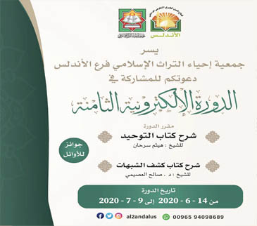 تنظم جمعية إحياء التراث الإسلامي الدورة الإلكترونية الثامنة, وسيكون مُقَرَّرُ الدورة فيها: شرح كتاب التوحيد للشخ/ هيثم السرحان، والكتاب الثاني: شرح كتاب كشف الشبهات, للشيخ/ د. صالح بن عبد الله العصيمي (عضو هيئة كبار العلماء والمدرس في الحرمين الشريفين).