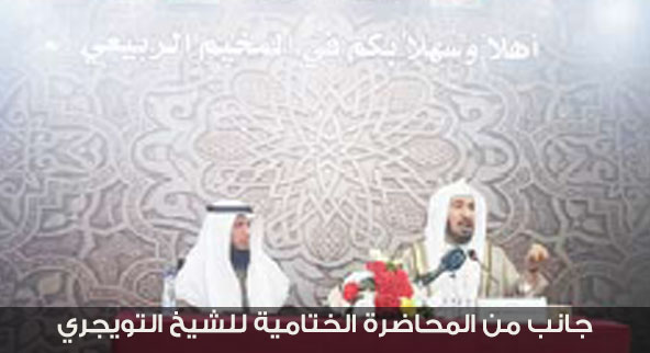وختم التويجري محاضرته بقول إمام الحرمين: «لو حلف أحدهم بالطلاق أن كل ما في البخاري صحيح لما طلقت زوجته» للثقة التامة أن كل ما بين دفتيه من قول النبي - صلى الله عليه وسلم .