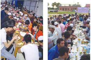 - من جهة أخرى قال الحشاش: إن مشروع (إفطار الصائم) وهو أحد المشاريع الخيرية الموسمية الذي تقيمه اللجنة في دول جنوب شرق آسيا في شهر رمضان المبارك من كل عام قد حقق نجاحاً كبيراً في رمضان الماضي؛ حيث تم -بفضل الله تعالى- توزيع (460) ألف وجبة إفطار صائم خلال شهر رمضان المبارك الماضي للعام الحالي (1438هـ - 2017م)؛ حيث إن جانبا كبيرا من هذه الوجبات تم توزيعها في مساجد المتبرعين ومراكزاهم، إضافة إلى دور الأيتام ومراكزهم وأماكن تجمع اللاجئين والمتضررين وإقامتهم.