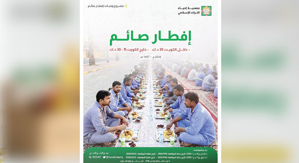 استعدادًا لاستقبال شهر رمضان المبارك، أعلنت جمعية إحياء التراث الإسلامي عن طرح مشروع وجبات إفطار الصائم، وذلك ضمن برامجها...